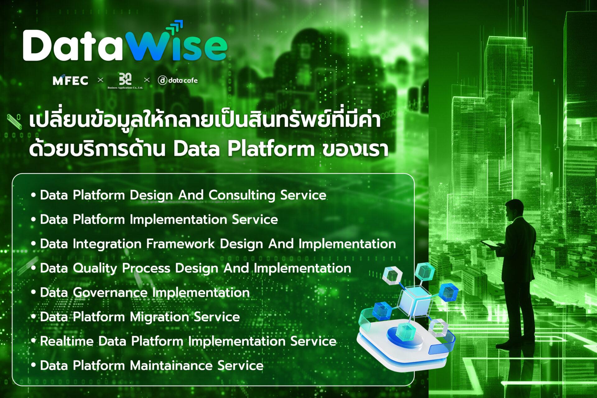 DataWise พร้อมยกระดับธุรกิจของคุณด้วย Intelligent Data Platform ที่สั่งสมประสบการณ์กว่า 20 ปี ด้วยทีมผู้เชี่ยวชาญด้าน Data Management ที่พร้อมตอบโจทย์ทุกความต้องการ เรามีโซลูชันครบวงจร ตั้งแต่การรวบรวมข้อมูลจากทุกแหล่ง ด้วยเทคโนโลยี AI ที่ทันสมัย ช่วยให้คุณเข้าใจข้อมูลลูกค้าได้ลึกซึ้งยิ่งขึ้น นอกจากนี้ เรายังมีบริการจัดการข้อมูลอย่างครอบคลุม ไม่ว่าจะเป็นการทำความสะอาดข้อมูล, การสร้างฐานข้อมูลที่ได้มาตรฐาน (Data Warehouse, Data Lake, Data Lake House) และการบริหารจัดการข้อมูลให้มีประสิทธิภาพสูงสุด เพื่อให้คุณนำข้อมูลไปใช้ในการตัดสินใจทางธุรกิจได้อย่างแม่นยำและรวดเร็ว เราพร้อมปรับตัวเข้ากับทุกสภาพแวดล้อม ไม่ว่าจะเป็น On-Premise, On Cloud หรือ Hybrid Cloud พร้อมรองรับข้อมูลทุกประเภท ทั้งแบบ Batch และ Realtime มั่นใจได้เลยว่า DataWise จะเป็นพันธมิตรที่ช่วยให้ธุรกิจของคุณเติบโตอย่างยั่งยืน