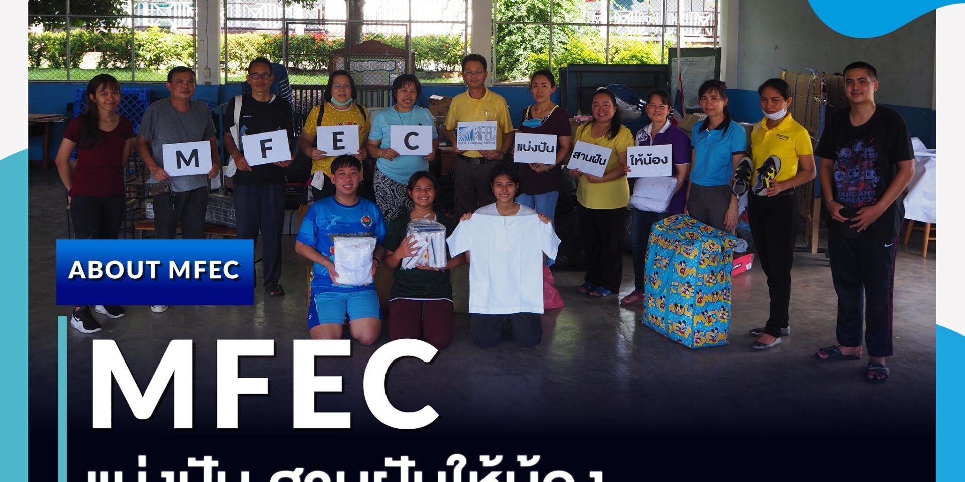 เพราะเยาวชนคือกำลังสำคัญของประเทศ โอกาสทางการศึกษาถือเป็นสิ่งสำคัญที่จะช่วยเสริมสร้างให้เยาวชนเติบโตได้อย่างมีคุณภาพ MFEC ตระหนักถึงความสำคัญในเรื่องนี้เป็นอย่างดี จึงได้จัดโครงการ “MFEC แบ่งปัน สานฝันให้น้อง” มอบของบริจาคให้กับโรงเรียนที่ยังขาดแคลน